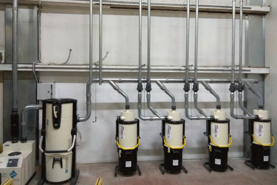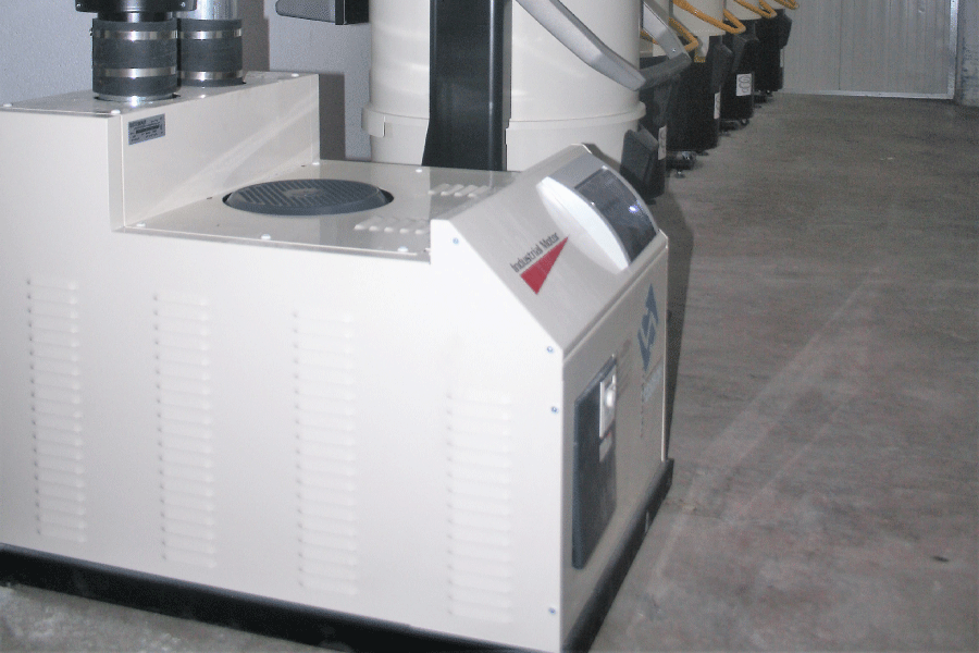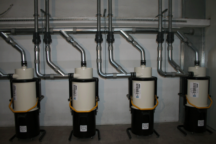 Κεντρική μονάδα αναρρόφησης 1 Βιομηχανική μονάδα 7,5 kw , 1 δΙαχωριστής Industrial big με σύστημα αυτοκαθαρισμού φίλτρου , 4 διαχωριστές Turbix,απομακρυσμένος έλεγχος master control